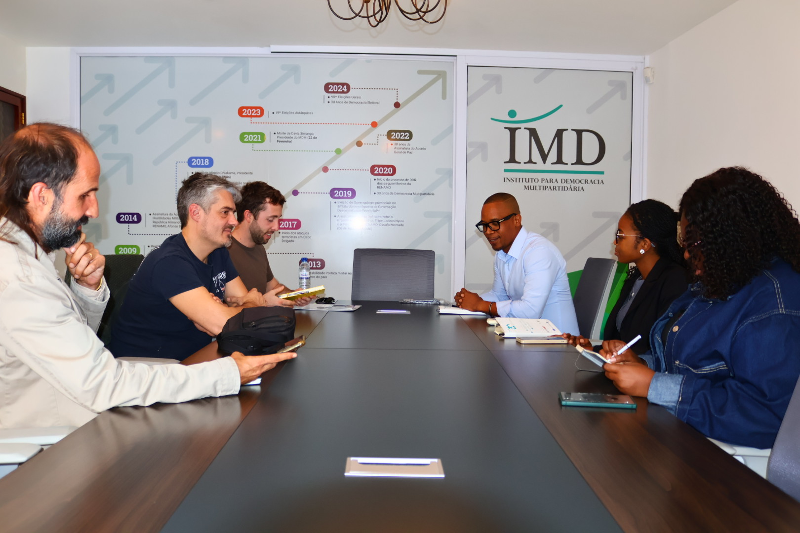 O Instituto para Democracia Multipartidária (IMD) recebeu, nesta segunda-feira, uma delegação da equipa do Decidim, acompanhada pela Agência Catalã de Cooperação para o Desenvolvimento, num encontro de cortesia enquadrado no reforço do Diálogo Nacional Inclusivo em Moçambique.